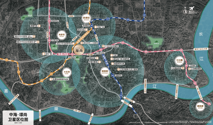 中海·璟尚占据都会核心区域,位居观音桥商圈、嘉州商圈、冉家坝商圈、大石坝商圈四大主流商圈几何中心,坐享双千亿商圈加持。