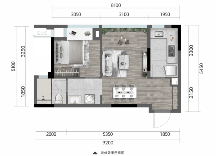 A1户型 建面约68㎡/套内约54㎡ 两室两厅一卫