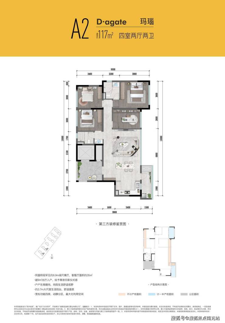 户型鉴赏:117平户型亮点十足,是主城唯一建面120平米以下拥有270度全景端的户型。三面落地采光设计,让室内充分沐浴阳光;4.3米超大生活阳台,拓展生活空间;全面屏落地玻璃(均无横向拼接),带来极致视野体验。