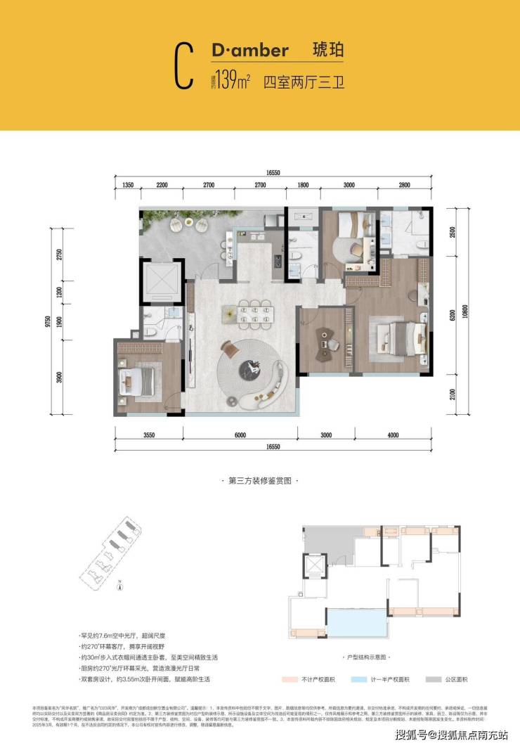 139㎡户型尽显奢华。罕见的豪华空中花园光厅,增添生活浪漫气息;270度环幕全面屏客厅,视野开阔;近30㎡步入式衣帽间通透主卧套,彰显尊贵;电视墙暗门设计,增加空间趣味性;双套房设计,满足多元需求;全面屏落地玻璃,提升整体格调。
