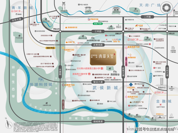 武侯发展·德商西璟天玺项目位于武青南路与武青西四路交汇的位置,准确的说,这里属于武侯新城北区。
