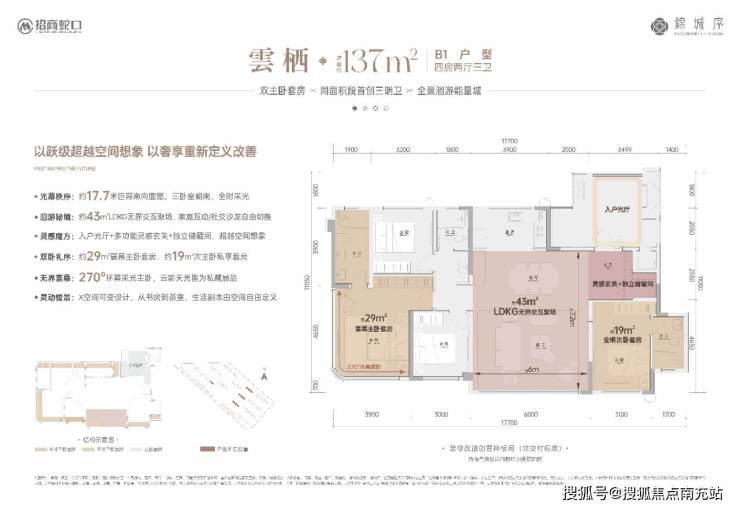 在户型设计上,招商锦城序更是匠心独运。项目提供120-169㎡的全系套四户型,满足不同家庭结构的居住需求。户型方正,得房率高,空间利用率大。无论是120㎡的套四双卫户型,还是139㎡的套四三卫户型,都设计得既实用又舒适。餐客厅一体化设计,连接景观阳台,空间开阔,采光通风良好,无论是家庭聚会还是日常休闲都很适宜。卧室分布合理,动静分区明显,休息区不受打扰。主卧套房设计,配备独立卫生间,更是提升了居住的舒适度和私密性。