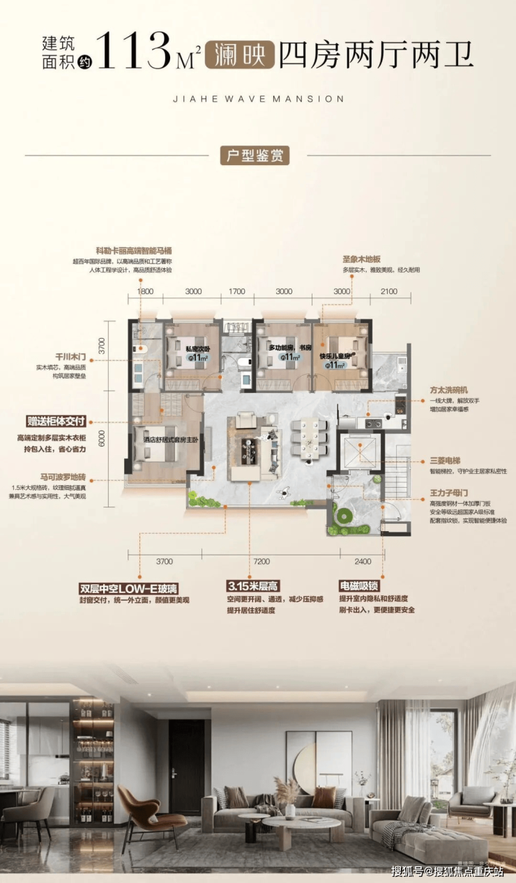 得房率高达115%,加之3.15米层高,空间奢阔;