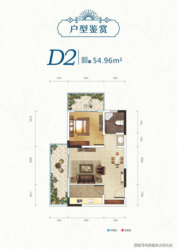 - **D1户型**:建面约为55㎡,一室一厅一卫,总价约为48万。