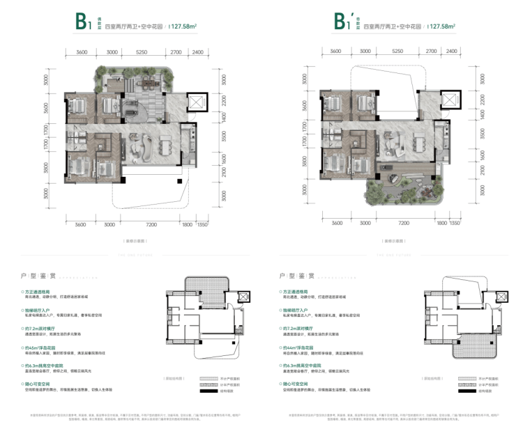 顶跃户型166-173-206㎡,实得290-380㎡,