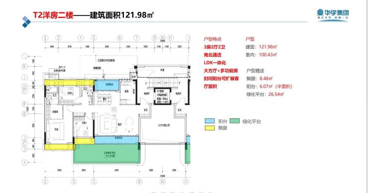 二楼建面122平,实得147平,总价181万.