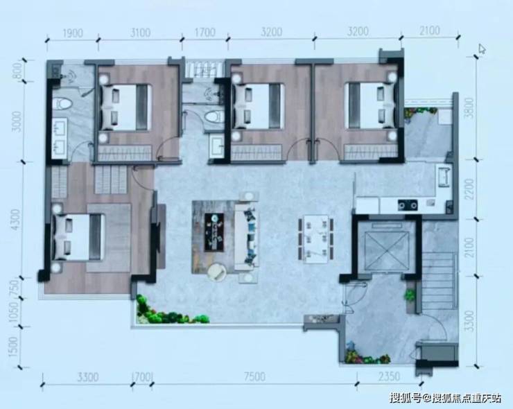 →五开间朝南布局,16.2米的面宽与市场同建面户型相比,开间采光面无敌了,所有卧室均有朝南采光面;
