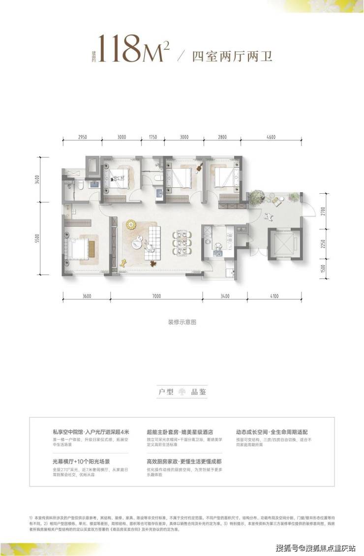 项目还有一个118㎡的四房户型,整体格局和109㎡户型区别不大,但是空间尺度肯定是又提升了。