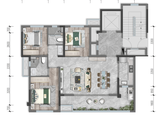 建面约170㎡户型则凭借更强的尺度感带来更强的家庭礼序感与空间可变性:四房空间、双套房设计,亦可根据家庭需求设计为三套房,让每一位家庭成员都拥有舒适的独立空间。