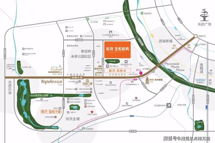 银河·玺悦和鸣位于双楠大道以北。作为武侯大道在绕城外的延伸段,双楠大道其实是一条贯穿成都西南方向的主干轴,在此大道沿线分别诞生了双楠、外双楠、武侯新城和新双楠。而银河·玺悦和鸣,就属于新双楠板块。