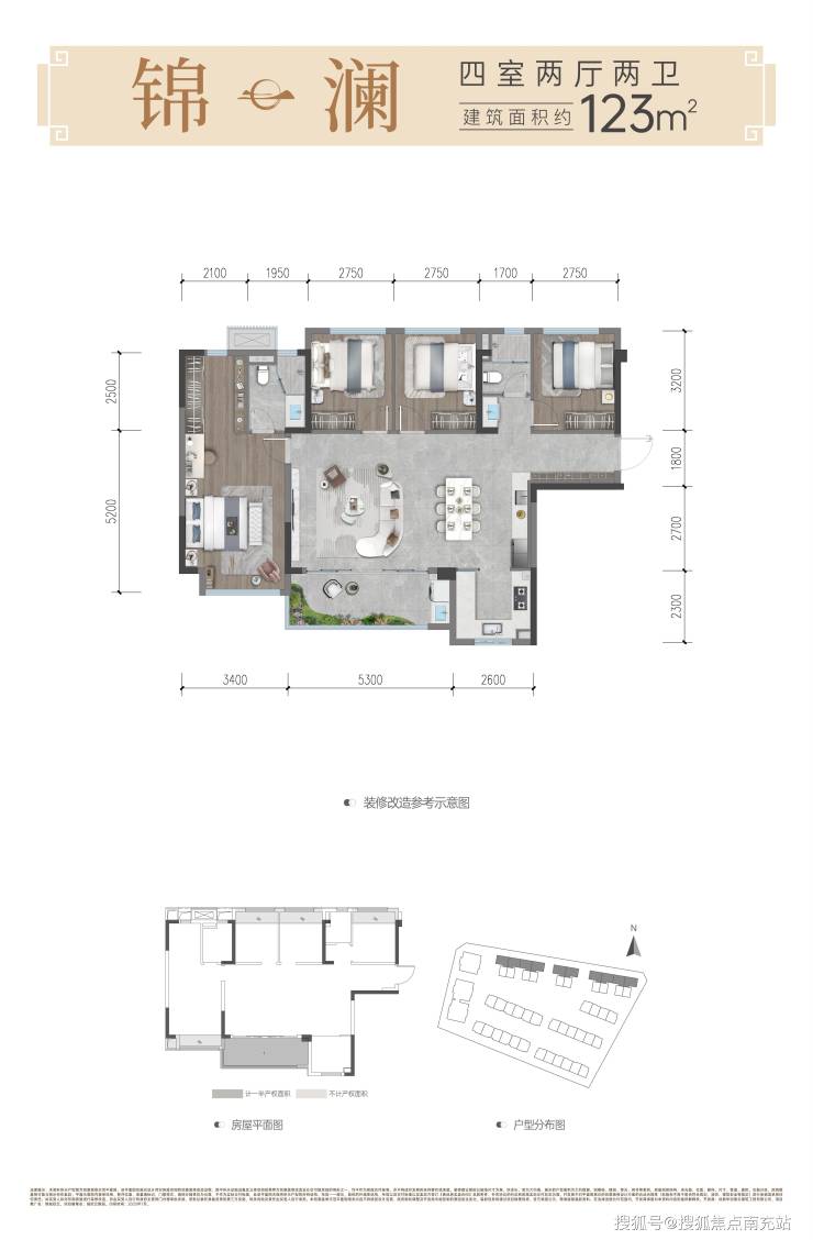 ✅锦澜丨建面约123㎡隐逸雅居丨四室两厅两卫