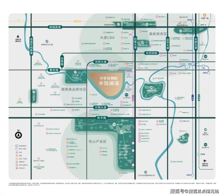 项目地块东、南、西三个方向都被水系、沿河的公园绿地所环抱,加上一街之隔就是500亩的三江公园,不远还有规划中的大湖堰公园,使得钟家湾TOD·半岛澜湾形成了沿江排布的【半岛河湾】形态。钟家湾TOD·半岛澜湾所拥有的,就是成都人追捧的“一江双公园+半岛河湾”景观