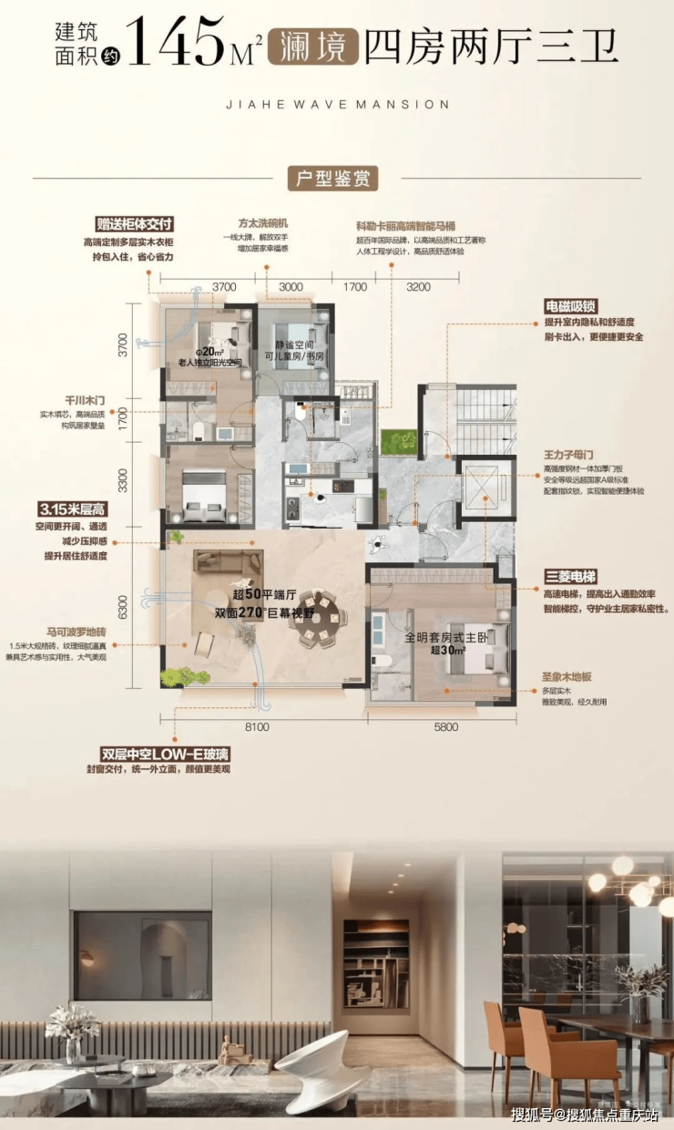 再加之全屋精装、封窗、衣柜、智能居家等的高效配备,属实高品质。