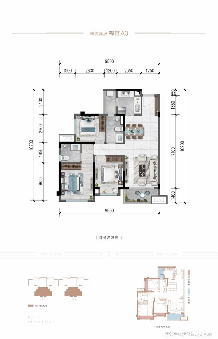 锦官A3:建面约99㎡,精致生活 三室两厅两卫