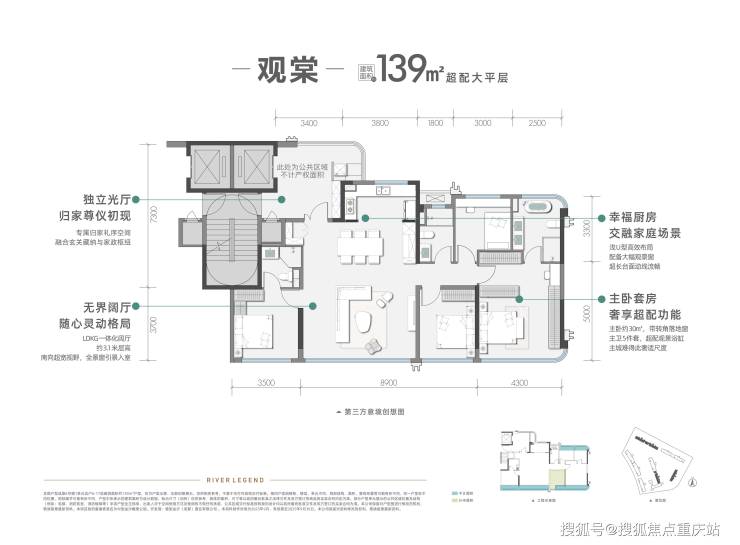 四室三厅三卫双套房/以尺度敬河居建面约 139㎡超配大平层