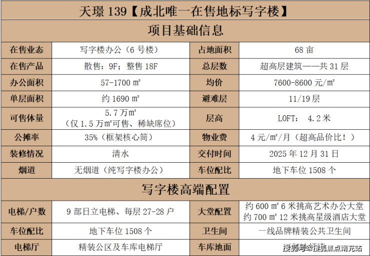 【天璟139】按6E高标准打造,是区域内唯一在售的标杆性商务建筑,总高度139米,也是区域内最高度的建筑。