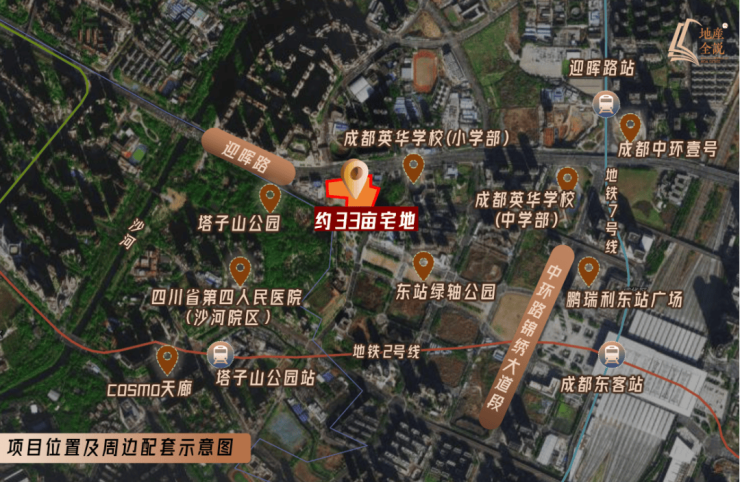 我们来看这块地,北侧临迎晖路,向南直面约410亩的塔子山公园。而塔子山公园不仅面积大,提供了丰富的景观资源,更为关键的是拥有深厚的历史底蕴,其标志性建筑九天楼,始建于隋末,被称为“锦绣天府第一楼”,是成都极具昭示性的地标建筑,给项目加大分了。