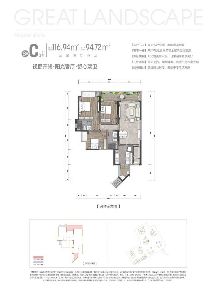 建面约116平套三