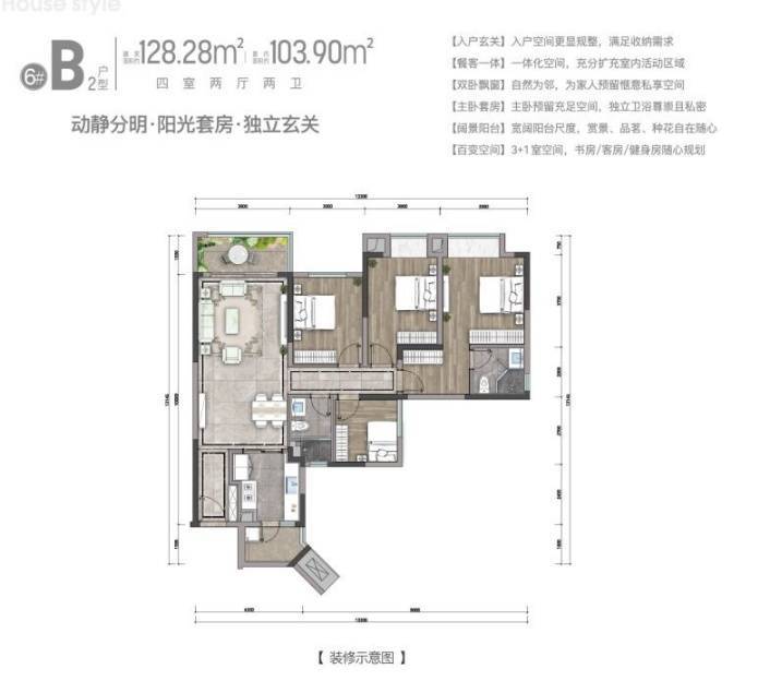 建面约128平套四