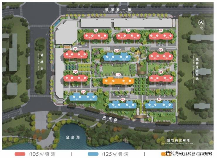 ### 南部新城最优首改住区【城投置地·锦湖岸】项目占地80亩,容积率2.0,总建筑面积约10.67万㎡。住宅全系为15 - 17F低密小高层,采用阵列式布局,2T2户全板式设计,全南北朝向且全南北通透,推出的105 - 143㎡套三套四产品,满足不同家庭的居住需求。### 最尊崇的归家礼遇项目打造酒店式礼遇社区大门,搭配250M超级归家主轴与165M尊享归家次轴,为业主营造尊崇的归家体验。