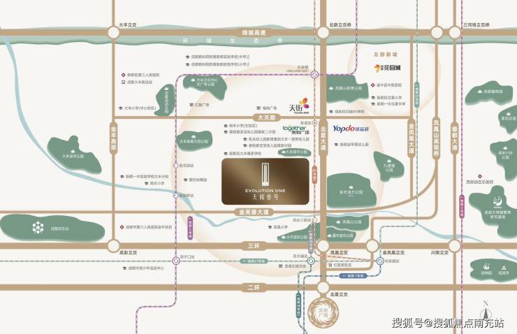 该项目坐落于成都北中轴三环旁,具体处于北星大道与金芙蓉大道的交会处。这里作为“凤凰山”的核心枢纽,肩负着国家中心城市综合服务的重任。并且,此片区是地区中心重点规划发展的区域 。