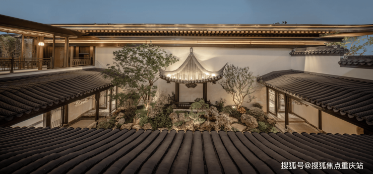 指的是院落中天井与房间的形式和关系这种合院形式,尽显中式院落之美。四水归堂晴雨两宜,四时皆景是中国古代建筑赋予天井的独特文化内涵,屋顶都是斜坡形式并且坡面斜向院内。下雨时节,雨水自屋檐滴落在地面形成汇流环绕的格局,四方之财如同天上之水源源不断地流入院墙,府内既是藏蓄之所,也是财禄象征因此被称为“四水归堂”。