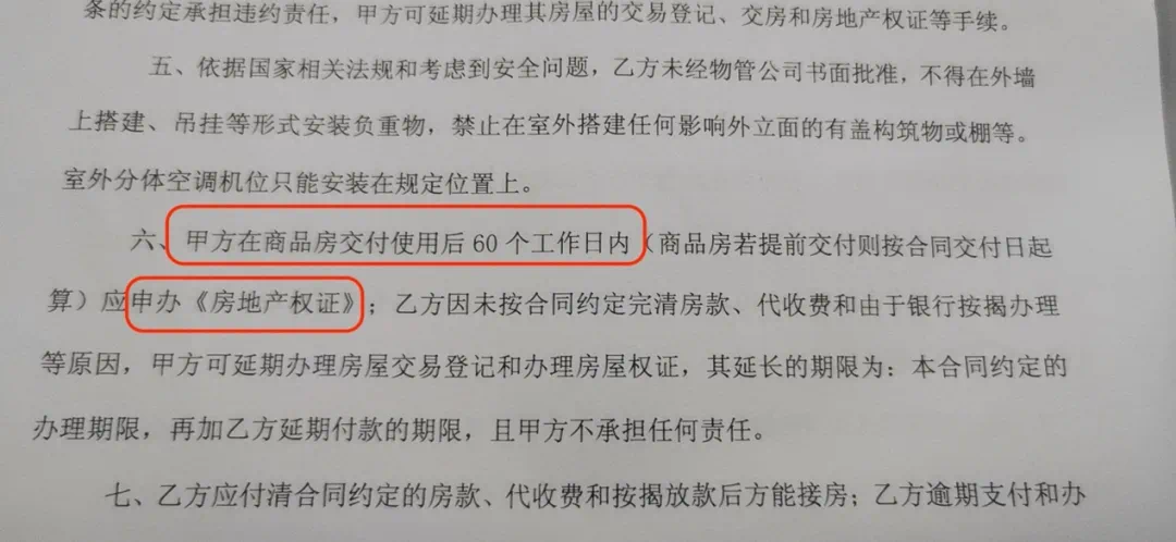 而在签订合同之后,却一直没有拿到房产证,根据合同显示,开发商应在商品房交付使用后60个工作日申办房产证。