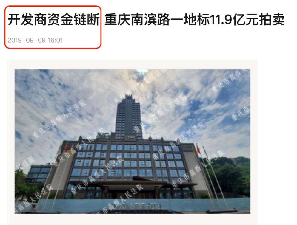为什么说开发商资金链出问题了呢?原来早在2019年9月,就有媒体爆料重庆南滨路一地标开始拍卖。