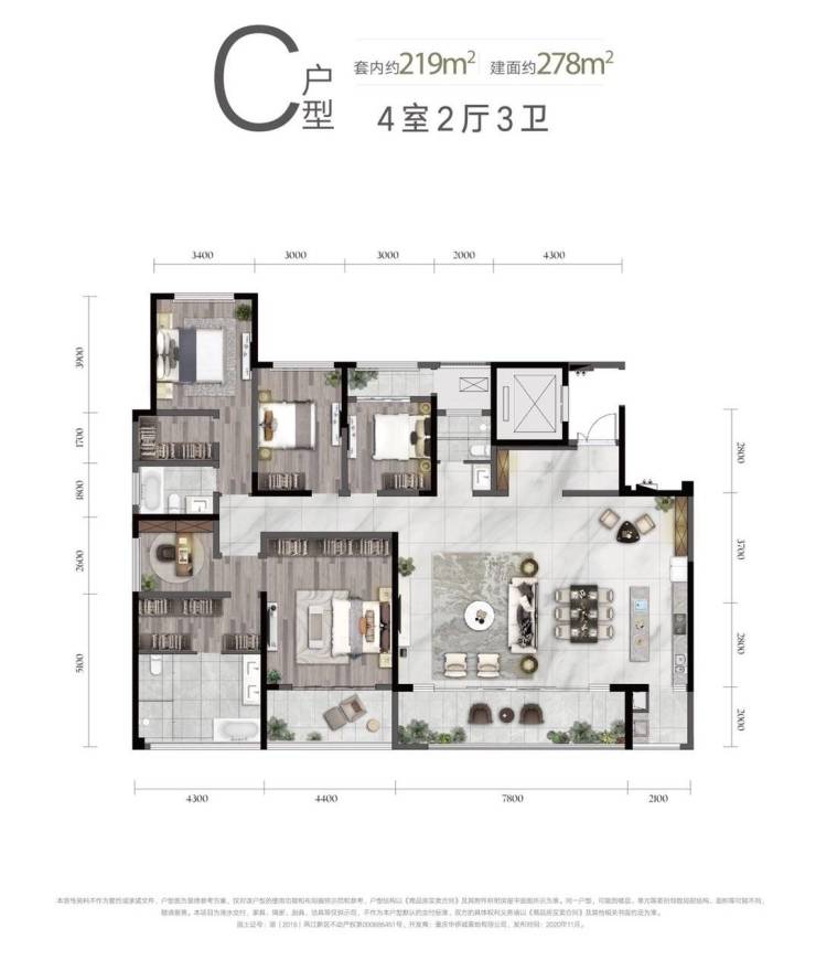 建面:278平、套内219平