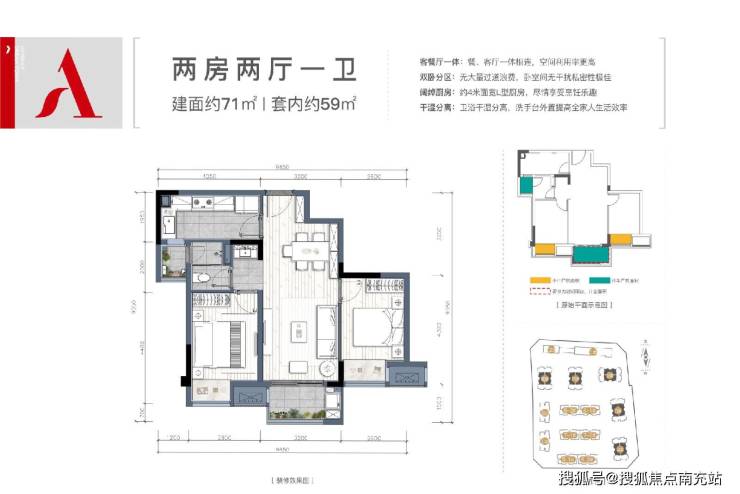 建面:71㎡(二室一卫精装)中户
