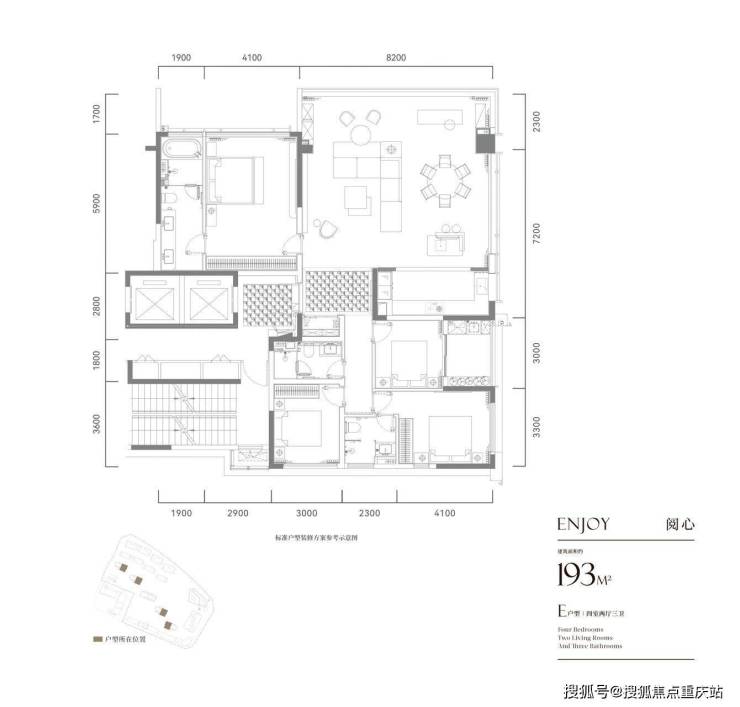 【建面约 193㎡ 四房两厅三卫|环幕视野 墅级尺度】
