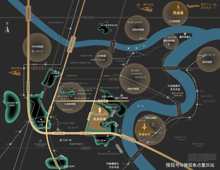 项目位于大渡口主城核心地段,共计 263 亩,是目前大渡口区在售体量最大的高品质纯改善住宅,填补了大渡口区域近 30 年来没有高端住宅的空白。本项目所在的长江艺术湾,正处于目前重庆房价的价值高地、价格洼地,未来升值空间巨大。