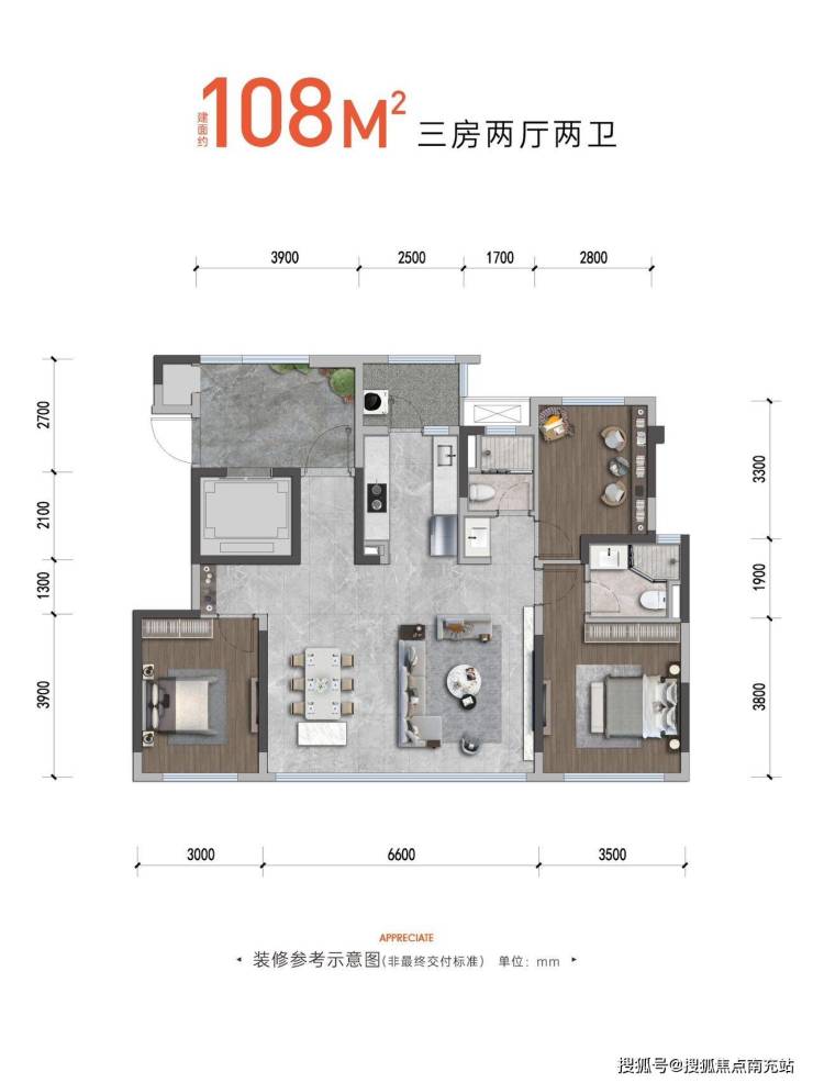 108㎡三室两厅双卫