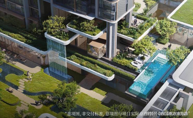 地面-空中多维生态体系、垂直生态链、多元悬浮空中云庭、垂直风雨连廊、地底垂瀑奇观;严选奢石等珍贵用材;车行全采光公园入库,随阳光和森林流淌而归。