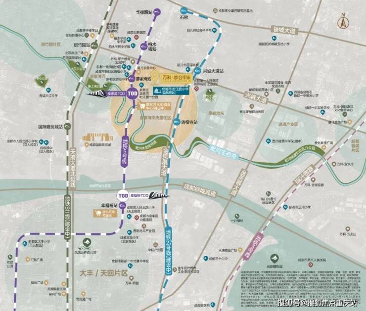 项目占位城北战略高地廖家湾的中心位置——【廖家湾中央居住区】,在天府大道城市中轴上,扼守城北门户枢纽。