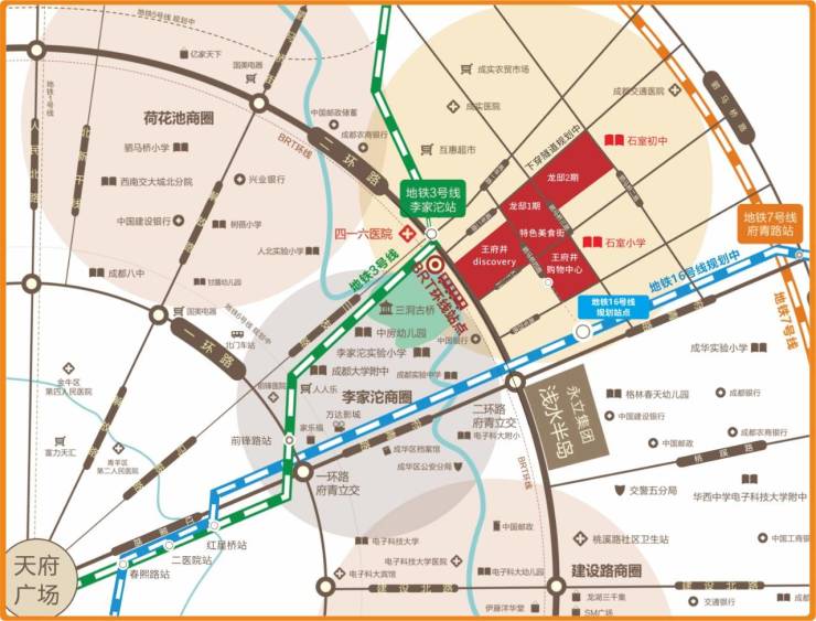 医疗配套:核工业416医院、中科甲状腺医院、华西二院成华妇女儿童医院等