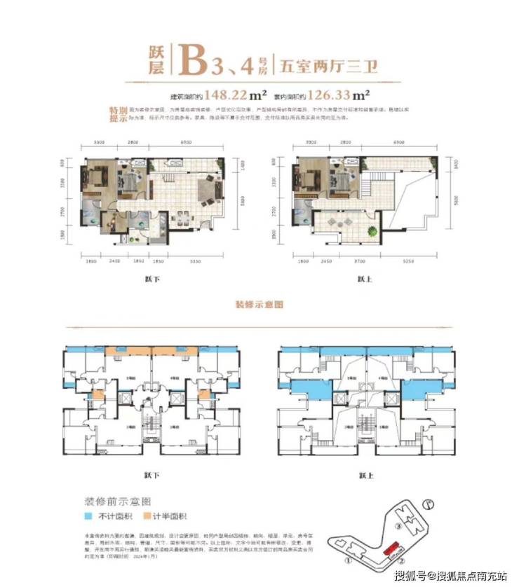 顶楼跃层建面:125㎡(三房)-143㎡(五房)