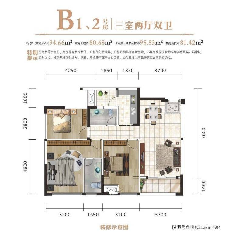2#房建面/套内:95.53/81.42㎡【东南】朝渝汇小学