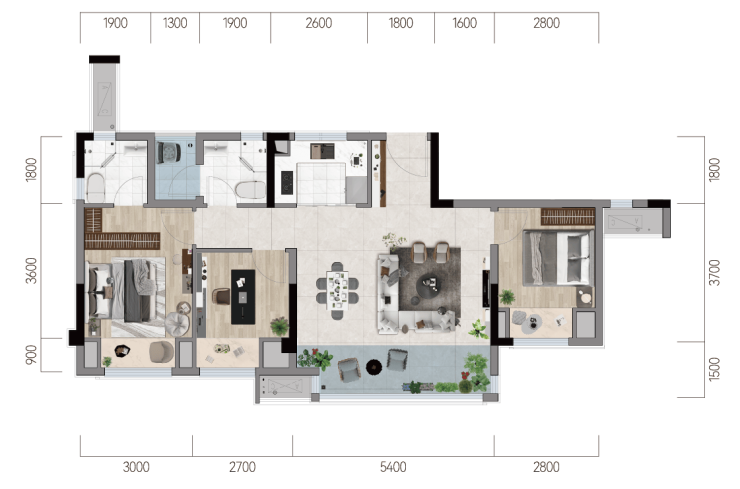 阔绰楼间距/约13.9米奢阔面宽/约5.4米美学横厅/配置独立书房/得房率约95.22%