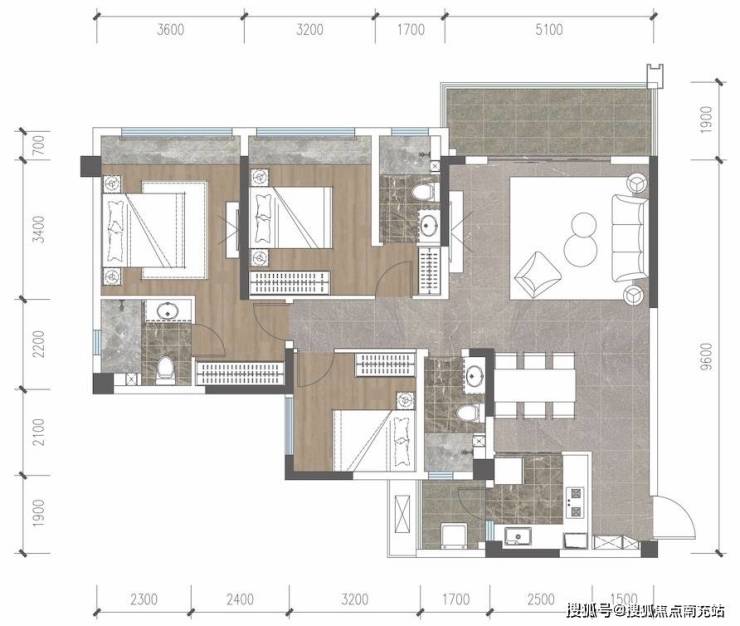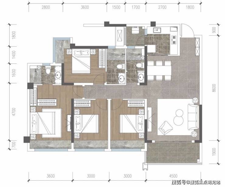 三面朝南布局,双主卧套房设计