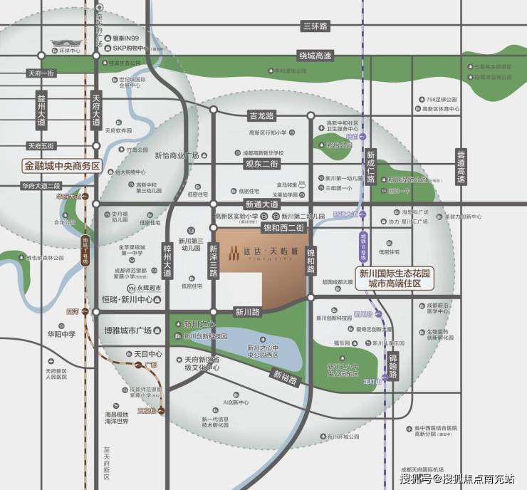 新川依托“园中之城”构想打造,“城市像素”规划理念,以产、住、商用地呈5:3:2比例混合,与TOD相辅相成,打造创新、生态、人文高度融合的“世界交融之城”;