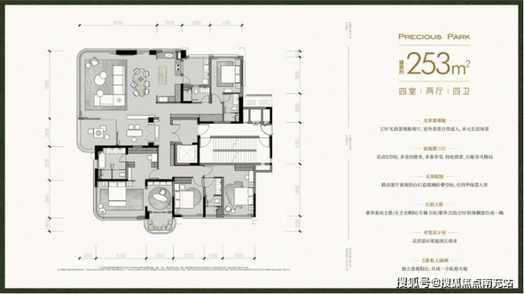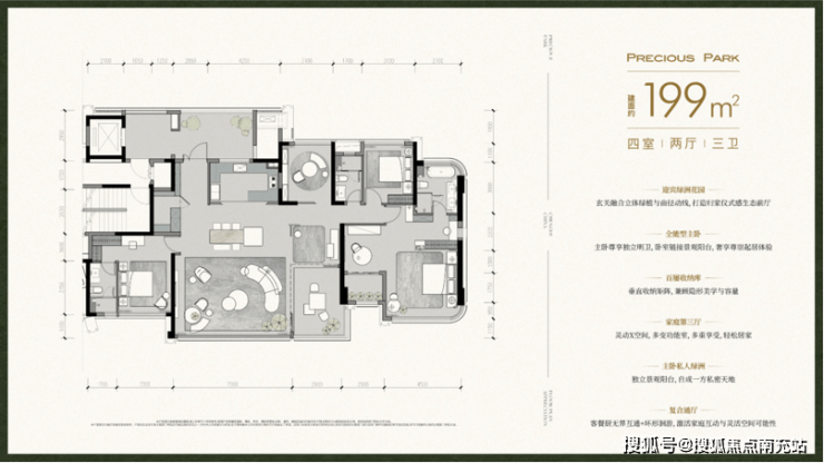 1.室内打造景观中轴 | 2.全空间独立花园配置 | 3.主城唯一室内四花园