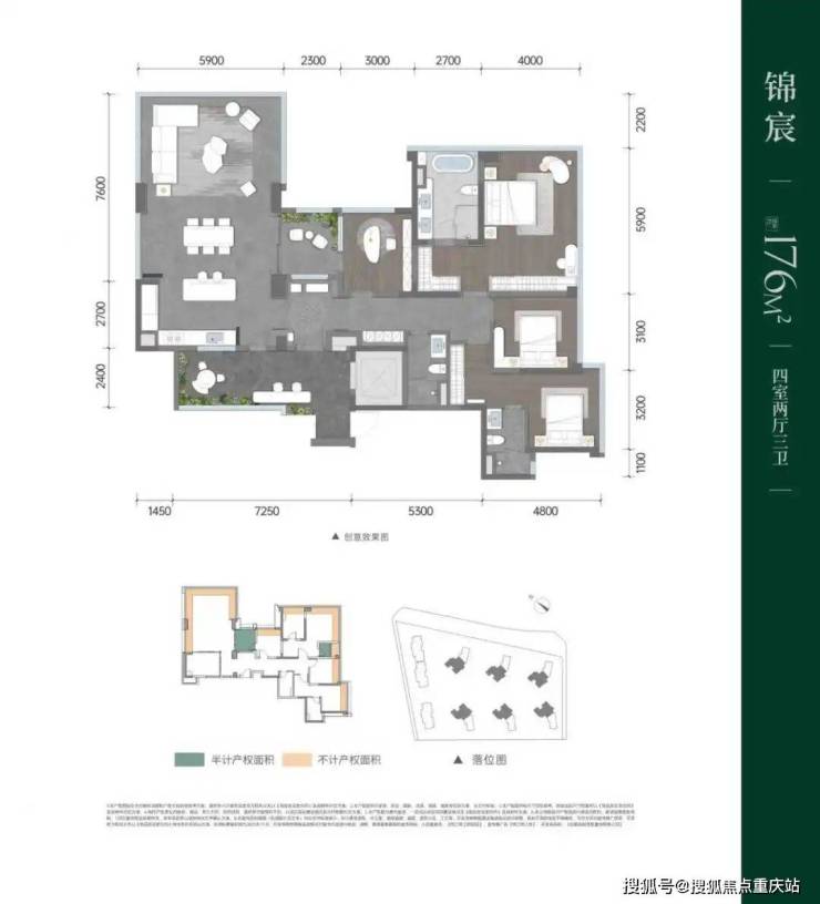 项目总占地约32亩,容积率仅约2.0,布局了8栋14-17层2T2纯板式小高层,保证视距的最大化。主力户型为建面约139—176㎡套四,总套数仅278套,户均占地约0.12亩,实现了对攀成钢老一代高密高容产品的全面超越,低密舒居难以复制。