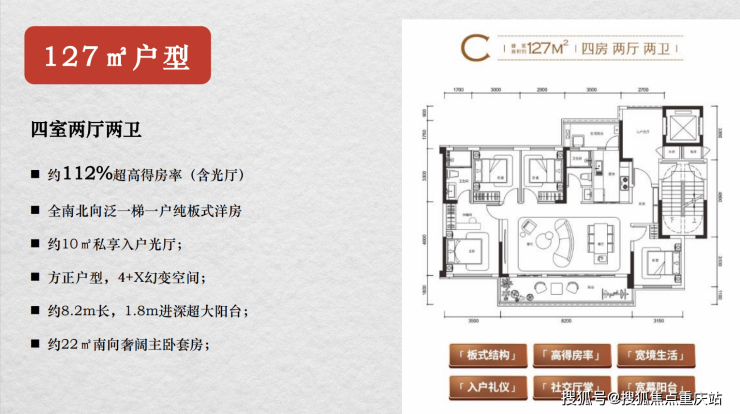 户型面积:102㎡-105㎡-127㎡