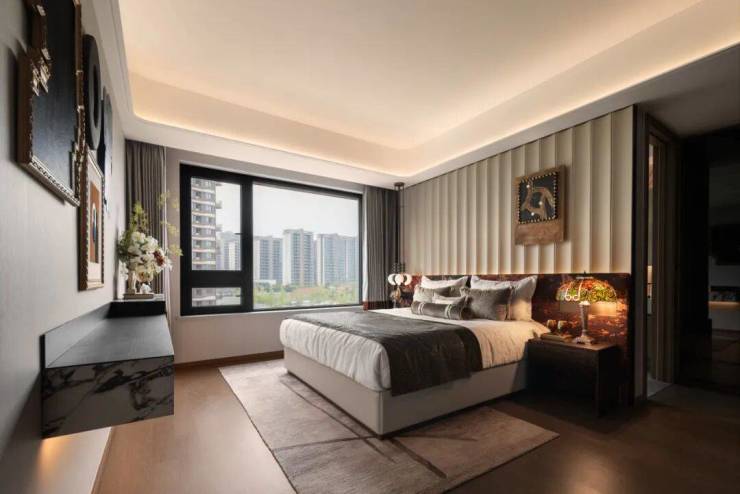 约170㎡以三卫格局与更清晰的卧室分区,强化“类三套房”的居住逻辑:主卧被做成行政级套系(约35㎡阔尺主卧并配置女王衣帽间,或主卧小家化+约7㎡步入式衣帽间),让睡眠、收纳、卫浴与生活陈列形成自洽系统;同时通过长幼分区、动静有度的布局,把老人房、儿童房、客房之间的互扰降到更低。