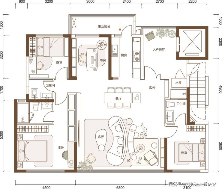 【无界聚场】约42㎡客餐厨阳台一体化通厅,视野无遮