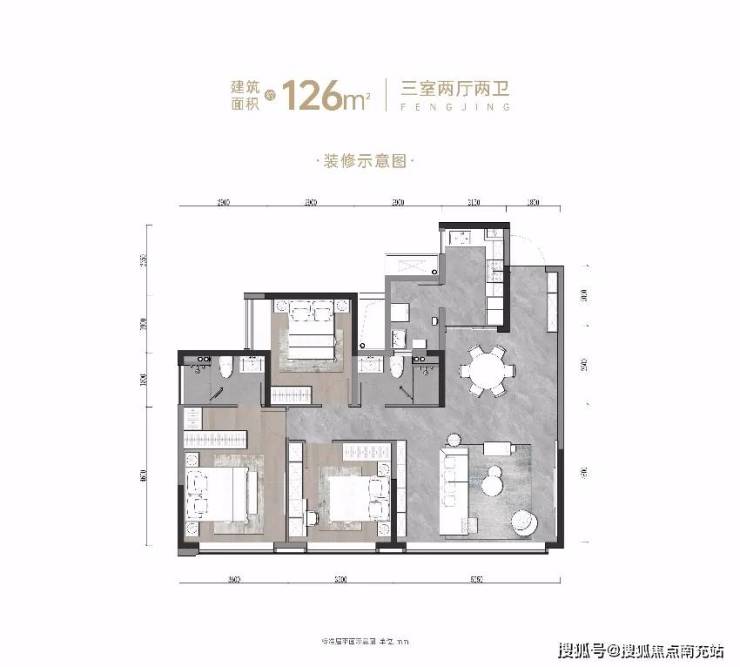 项目主力户型为建面约126㎡的套三和建面约143㎡的套四。两款户型在舒适度上并不存在严格的“壁垒”,反而把每一款户型的尺度感、空间感都做到了进阶升华。