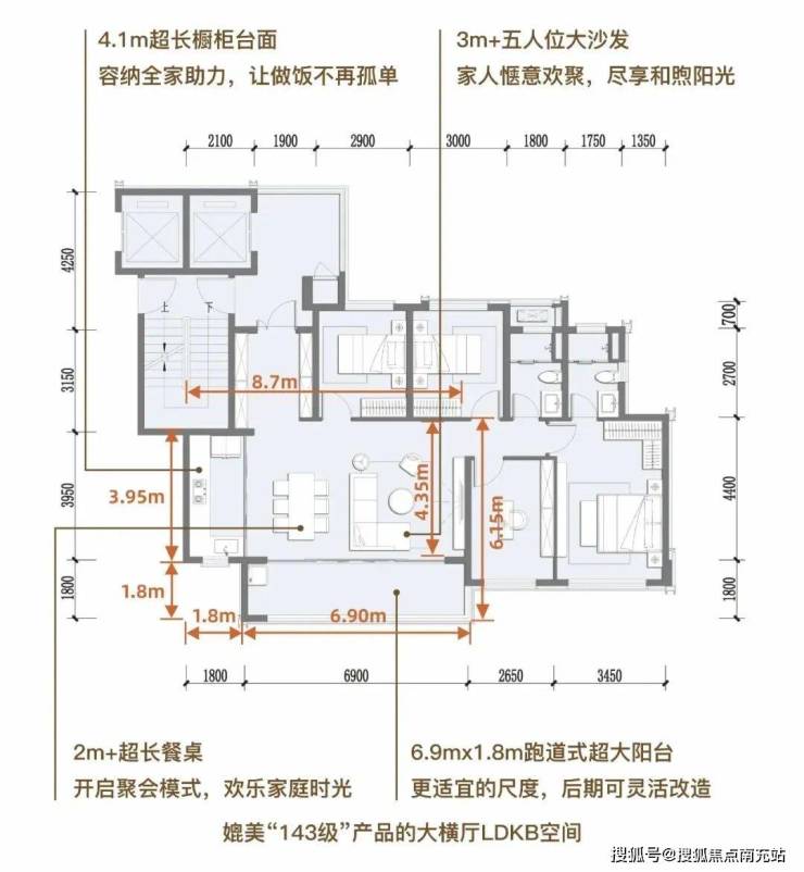 约7米LDKB大面宽横厅,给予超乎寻常的居住和社交体验;约15米南向超大面宽,南向四开间,无论是采光通风,还是生活尺度感都十足,并且可根据家庭成员人数科学规划,随心布局,拓宽更大尺度的生活境界。