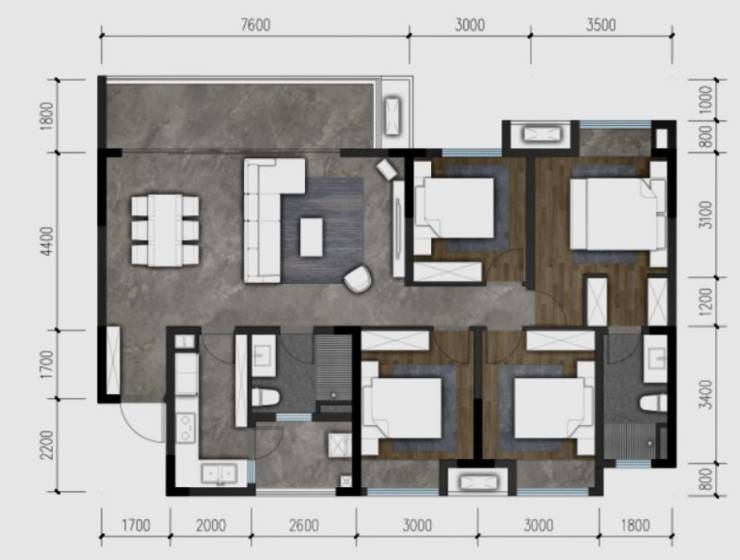 竖厅格局,阳台/客厅/餐厅/厨房无缝连接