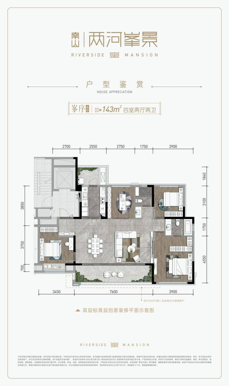 高层:建筑面积约143㎡套四产品,以现代简约格调打造契合一线千亩滨河景观,打造城市里,公园旁低密舒居!